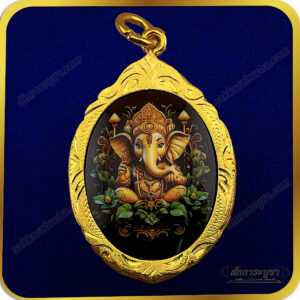 รายละเอียดสินค้า: จี้ภาพพระพิฆเนศในปางนั่งสมาธิ แสดงถึงความสงบและปัญญาที่เกิดจากการทำสมาธิ พระพิฆเนศในภาพนี้ประทับนั่งอย่างสง่างาม มือหนึ่งถืออักษรวงศ์และอีกมือหนึ่งประทานพร องค์พระพิฆเนศถูกออกแบบด้วยความละเอียดอ่อน โดยมีดอกไม้และสัญลักษณ์มงคลประดับรอบองค์ ทำให้ดูเป็นองค์พระที่เปี่ยมไปด้วยพลังแห่งความศักดิ์สิทธิ์ จี้ถูกล้อมด้วยกรอบทองชุบทองเหลืองแกะสลักอย่างประณีต ทำให้เครื่องรางชิ้นนี้ดูหรูหราและน่าเคารพบูชา