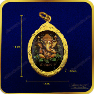 จี้ภาพพระพิฆเนศปางนั่งสมาธินี้เป็นสัญลักษณ์ของความสมดุลในชีวิตและการบรรลุเป้าหมายอย่างมั่นคง เสริมสร้างความสงบในจิตใจและความสำเร็จทางด้านปัญญา