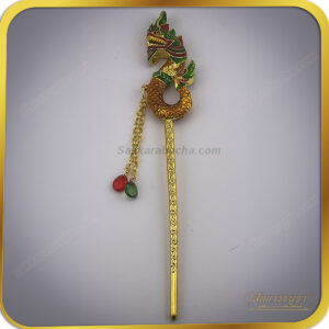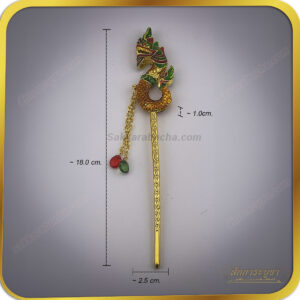 รายละเอียดสินค้า: ปิ่นปักผมพญานาค เป็นเครื่องประดับศีรษะที่มีความหมายมงคลตามความเชื่อในศาสนาพุทธและฮินดู พญานาคเป็นสัญลักษณ์แห่งการปกป้องคุ้มครองและความอุดมสมบูรณ์ ปิ่นปักผมชิ้นนี้ถูกออกแบบเป็นรูปพญานาค 2 สี คือสีเขียวและสีน้ำเงิน) ลวดลายพญานาคแกะสลักอย่างละเอียดและวิจิตร สร้างความหรูหราและความศักดิ์สิทธิ์ นอกจากจะใช้เป็นเครื่องประดับผมที่สวยงามแล้ว ยังเชื่อกันว่าสามารถเสริมดวงด้านความคุ้มครองจากอันตรายและพลังงานลบได้อีกด้วย
