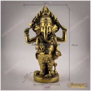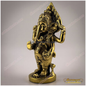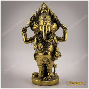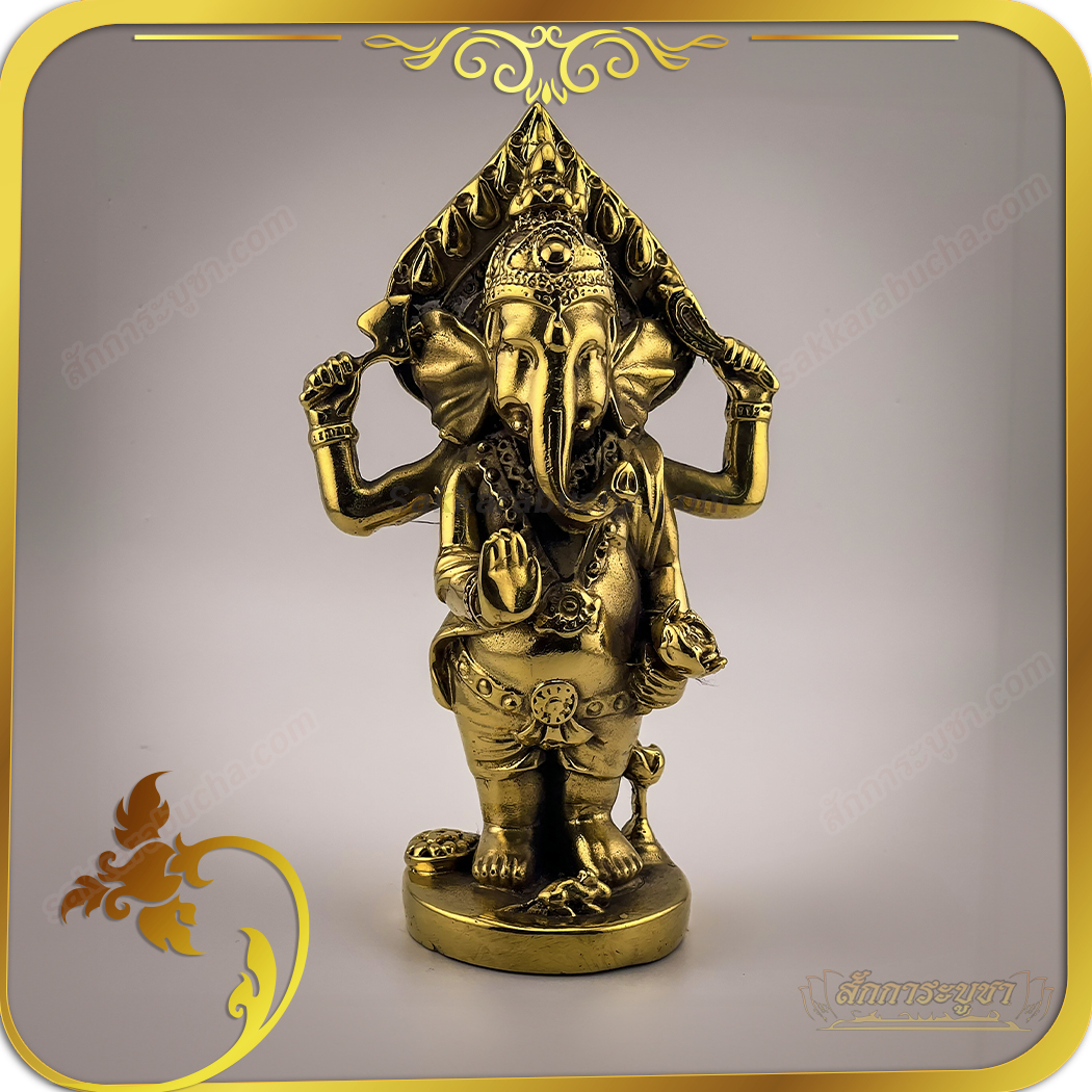 ความเป็นมา: พระพิฆเนศเป็นเทพที่มีความสำคัญในศาสนาฮินดูและเป็นที่เคารพในหลายวัฒนธรรมในฐานะเทพแห่งปัญญาและการขจัดอุปสรรค ปางยืนประทานพรสี่กรเป็นสัญลักษณ์ของพลังและความกรุณาในการช่วยเหลือและประทานพรแก่ผู้ที่บูชา พระองค์ถืออาวุธเพื่อป้องกันและทำลายสิ่งไม่ดี ขณะเดียวกันก็มีดอกบัวซึ่งสื่อถึงความบริสุทธิ์และการเติบโตในชีวิต