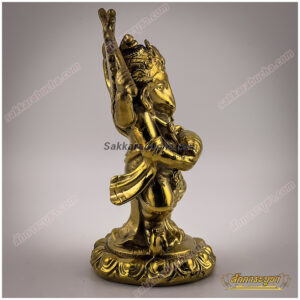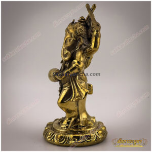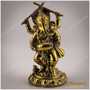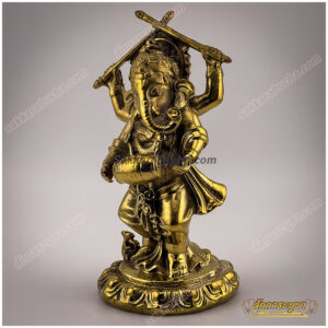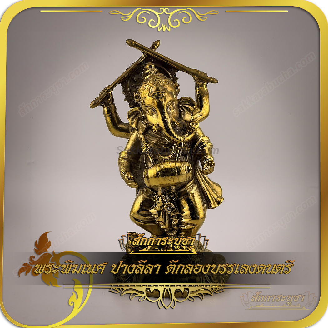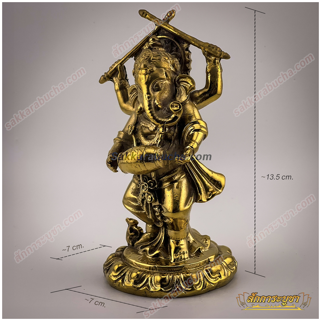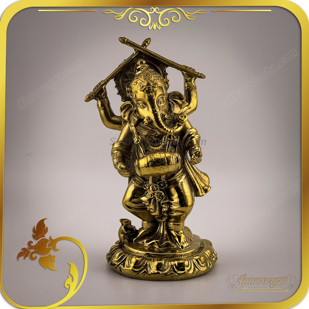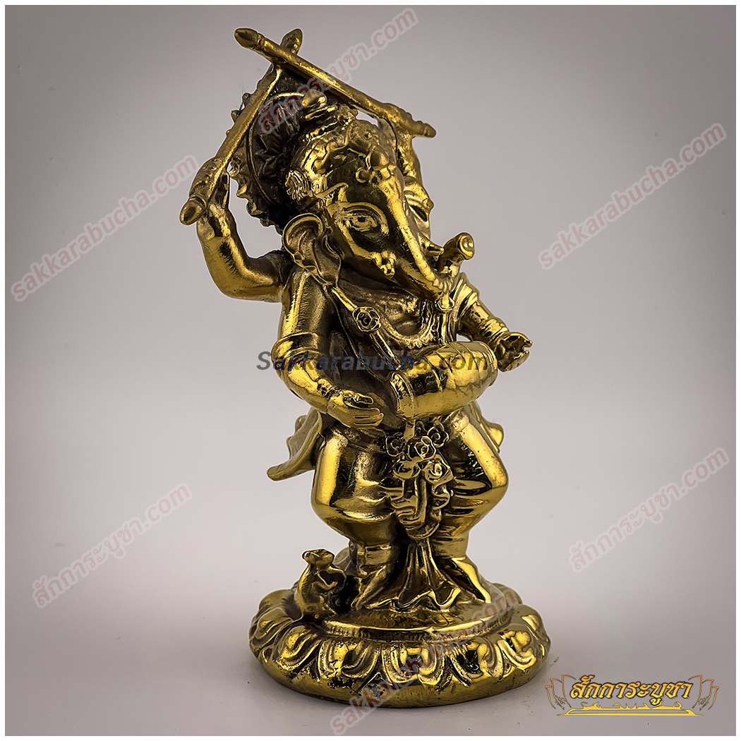 สักการะบูชา : รูปหล่อลอยองค์ ทองเหลือง พระพิฆเนศ ปางลีลา ตีกลองบรรเลงดนตรี