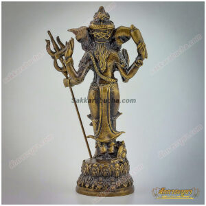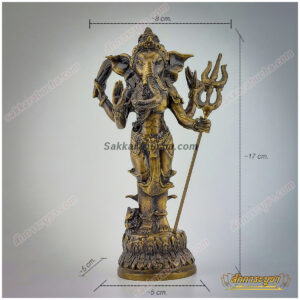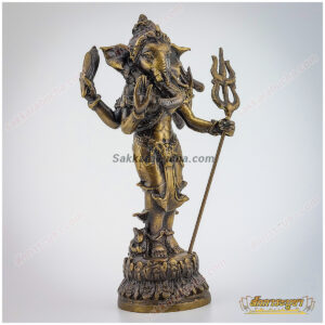 รายละเอียดของสินค้า: รูปหล่อลอยองค์พระคเณศาณี ปางนารี ทำจากทองเหลืองเนื้อดี ออกแบบอย่างประณีต พระคเณศาณีเป็นปางของพระพิฆเนศในรูปแบบของสตรี พระองค์มีสี่กร แต่ละกรถือสัญลักษณ์ต่าง ๆ เช่น ตรีศูล งู และศาสตราอื่น ๆ สื่อถึงพลังและการปกป้อง หนึ่งกรยกขึ้นในท่าประทานพรเพื่อมอบความสำเร็จและการปัดเป่าอุปสรรค พระองค์ประทับยืนอย่างสง่างามบนฐานดอกบัว ซึ่งเป็นสัญลักษณ์ของความบริสุทธิ์และความสูงส่ง หนูมุสิกะ พาหนะของพระพิฆเนศอยู่ที่ฐาน แสดงถึงความจงรักภักดี เหมาะสำหรับการตั้งบูชาเพื่อเสริมสิริมงคลและปัดเป่าอุปสรรคในชีวิต