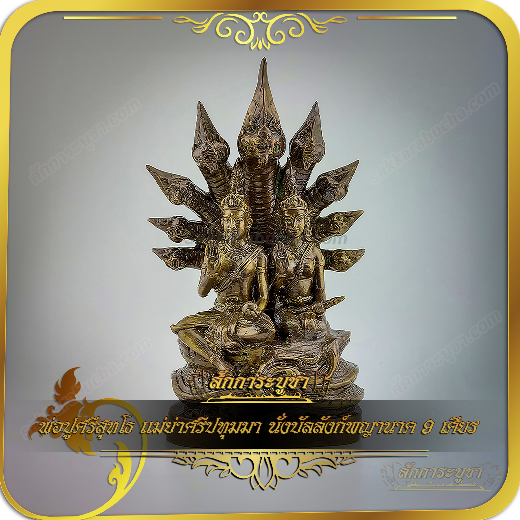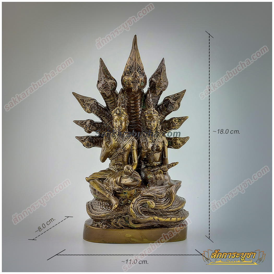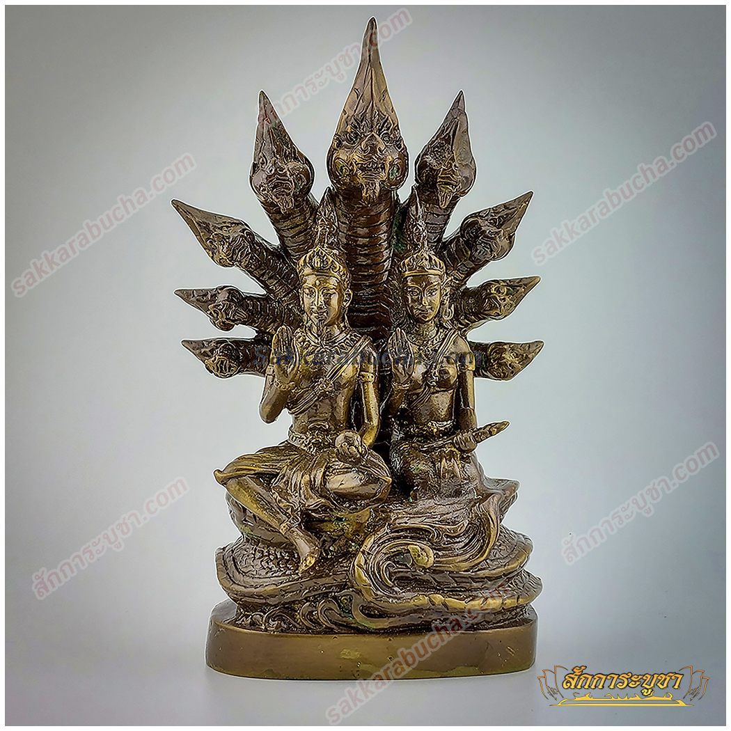 สักการะบูชา : รูปหล่อลอยองค์ ทองเหลือง พ่อปูศรีสุทโธ แม่ย่าศรีปทุมมา นั่งบัลลังก์พญานาค 9 เศียร