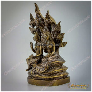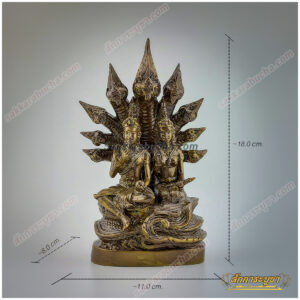 รูปหล่อลอยองค์ ทองเหลือง พ่อปูศรีสุทโธ แม่ย่าศรีปทุมมา นั่งบัลลังก์พญานาค 9 เศียร ขนาดฐาน 8.0×11.0 สูง 18.0 cm.