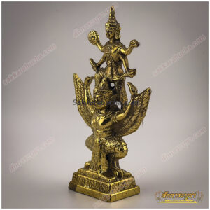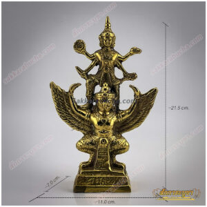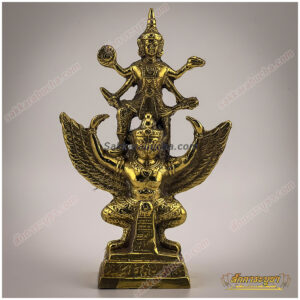รูปหล่อลอยองค์ “พระนารายณ์ทรงครุฑ” เป็นงานปั้นที่สวยงามและทรงพลัง โดยใช้วัสดุทองเหลืองอย่างดี สัญลักษณ์ของพระนารายณ์เป็นเทพเจ้าแห่งการปกป้องและปกครองโลก ในศาสนาฮินดู พระนารายณ์เป็นเทพเจ้าผู้ทำหน้าที่รักษาความสมดุลของจักรวาล ทรงครุฑเป็นพาหนะสำคัญที่คอยอำนวยความสะดวกในการเดินทางและช่วยต่อสู้กับสิ่งชั่วร้าย