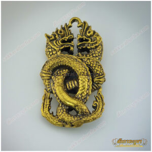 รูปหล่อลอยองค์ (องค์เล็ก) พญานาคคู่ นาคเกี้ยว ทองเหลือง ขนาด 2.4×3.5 สูง 0.7 cm.