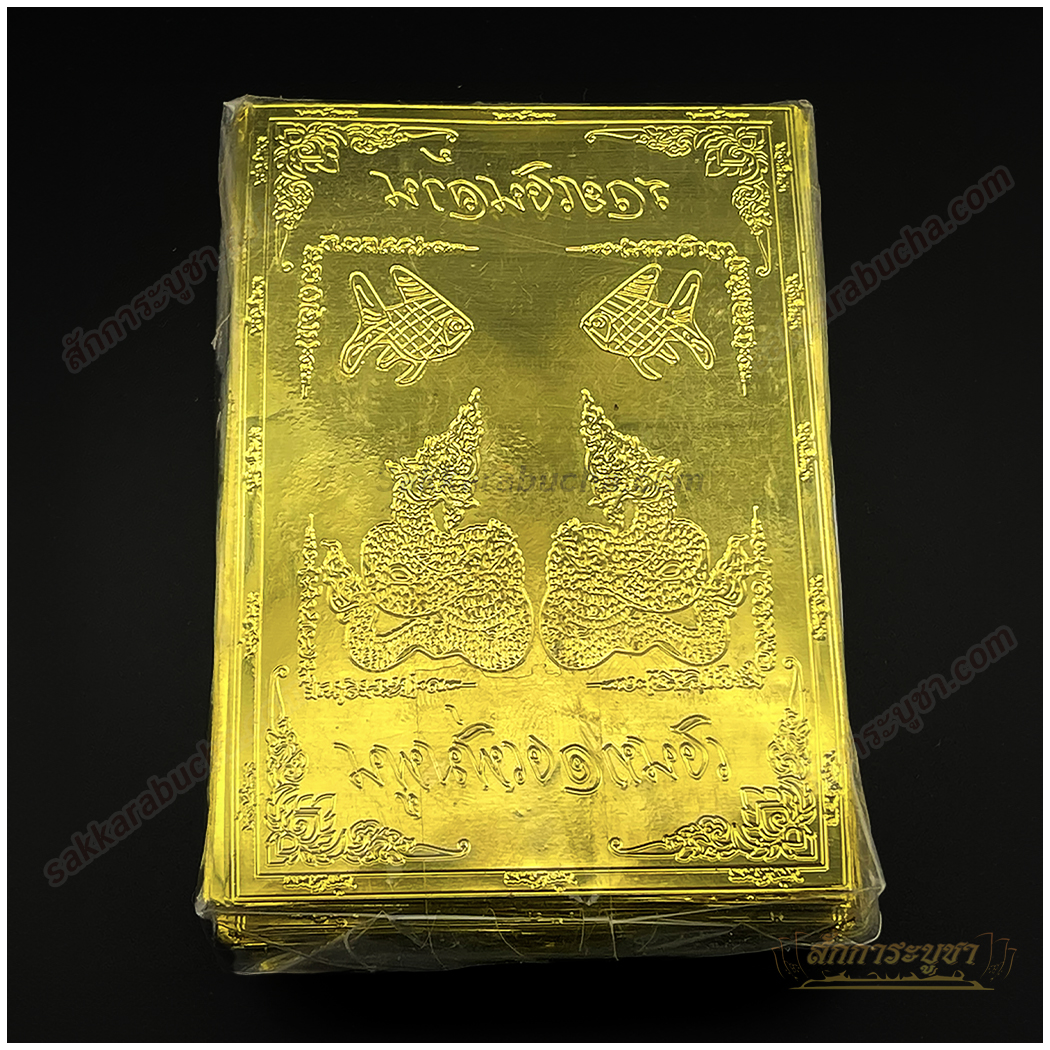 แผ่นทองมงคลพญานาค ขนาด 5.5×8 ซม. เป็นเครื่องรางที่มีความหมายด้านโชคลาภและการปกป้องคุ้มครอง แสดงภาพของพญานาคคู่ในรูปแบบสองสี ที่เป็นสัญลักษณ์ของความยิ่งใหญ่และทรงพลังในตำนานของพญานาค พญานาคถือเป็นสัญลักษณ์แห่งความมั่งคั่ง อำนาจ และการปกป้อง ทำให้แผ่นทองนี้เหมาะสำหรับการบูชาเพื่อเสริมดวงด้านการเงินและความสำเร็จในชีวิต