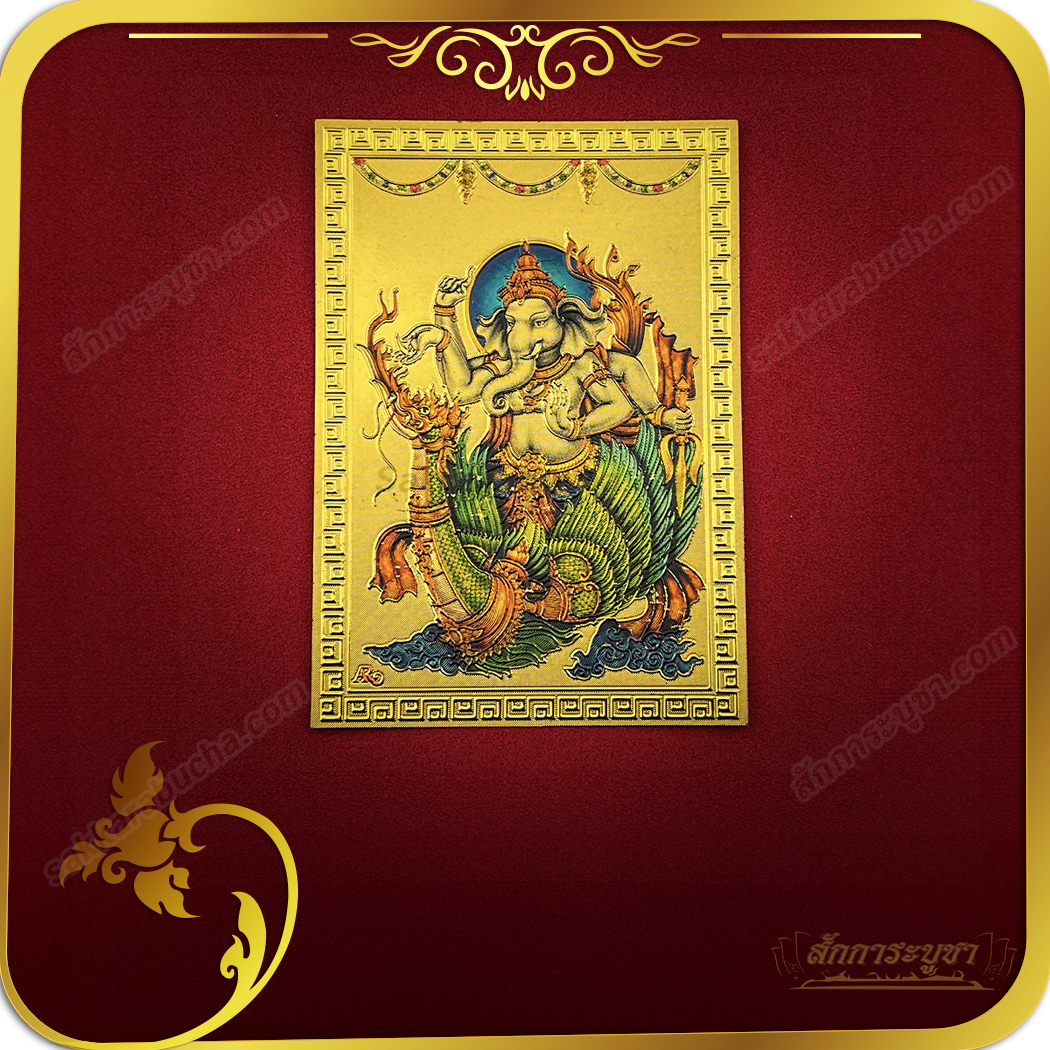 สักการะบูชา : แผ่นทองพระพิฆเนศประทับบนหงส์