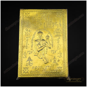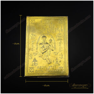 แผ่นทองมงคลหลวงปู่สรวง ขนาด 5.5×8 ซม. เป็นเครื่องรางที่มีพลังศักดิ์สิทธิ์แห่งการปกป้องและเสริมดวง หลวงปู่สรวงเป็นพระเกจิอาจารย์ที่มีชื่อเสียงโด่งดังในเรื่องของการปกป้องคุ้มครอง แผ่นทองนี้ออกแบบด้วยความละเอียดอ่อน แสดงภาพหลวงปู่สรวงในท่าประทับ นั่งอยู่บนฐานและถือไม้เท้า ซึ่งเป็นสัญลักษณ์แห่งการให้พรและการนำทางสู่ความสำเร็จ